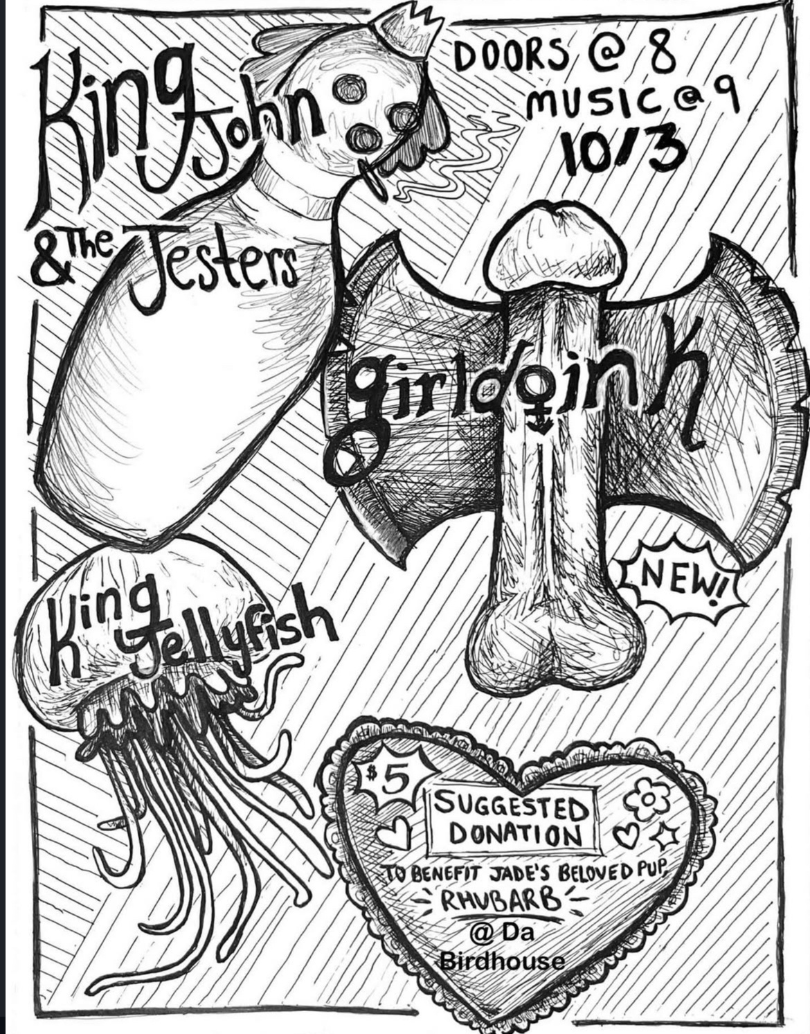 donations go to birdhouse’s pup Rhubarb!