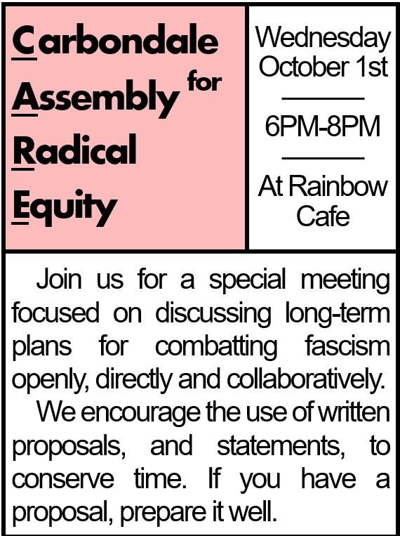This Special meeting is open to proposals focused on long term planning, including both detailed step-by-step proposals and calls for organizing around or towards a particular issue. Written proposals are highly encouraged and can be sent to a CARE facilitator through signal (Don't know a facilitator? ask a punk!). We want those who organize with other activist groups to be present, please forward this invitation to any friends or collaborators. We hope to provide light refreshments to attendees.