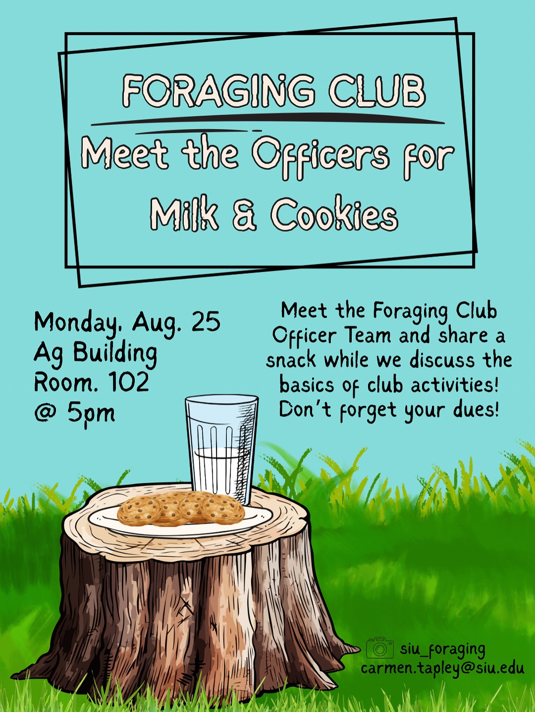 The SIU Foraging Club is open to students, staff, and community. If you have an interest in foraging or becoming a part of our club come join us tonight at the SIU Ag Building, Room 102, for milk and cookies with the officer team!