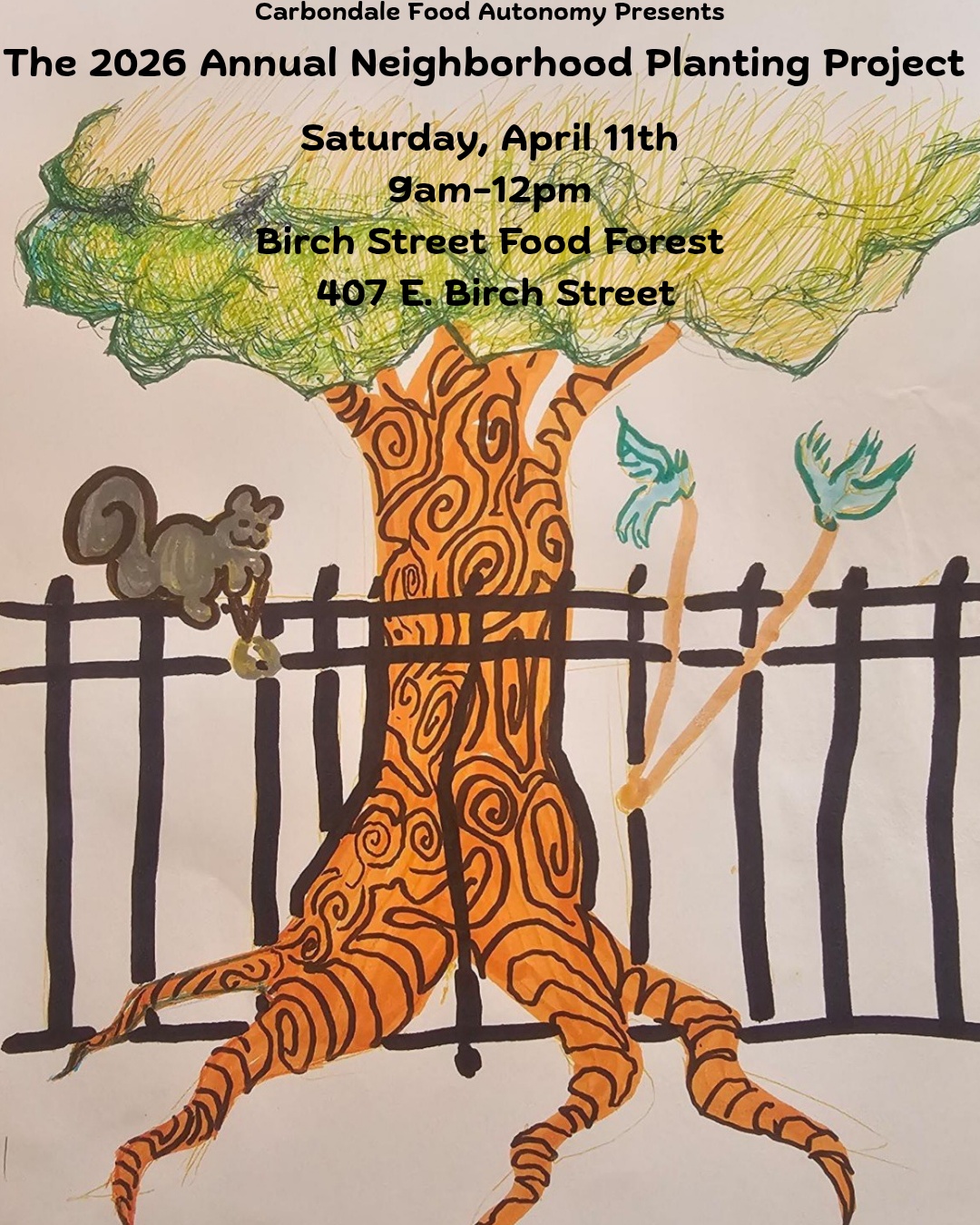 Carbondale Food Autonomy is hosting the annual native tree distribution again this year at the Birch Street Food Forest across the street from the Eurma Hayes Center. 900 trees of 12 species will be available to the community.